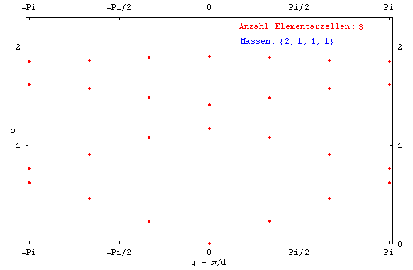 Wenn mehr als zwei Gitterpunkte die Elementarzelle bilden, entstehen weitere optische Zweige. Zum Beispiel bei 4 Teilchen pro Elementarzelle erhält man folgendes Bild: